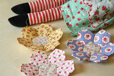 I keep EPP (English Paper Pieced) hexies and diamonds cut and ready to go.