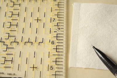 2. On the wrong side of your fabric use a small acrylic ruler (see through) to mark 1/4 inch away from the edge of the fabric (seam allowance).