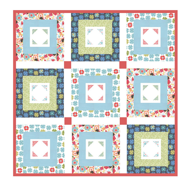 The next option uses a 3″ sashing {cut the strips to 3 1/2″}. For this sashing you will need about 3/4 yard of sashing fabric. In addition, for the back you will need about 3 3/4 yards of fabric, and 1/2 for binding.