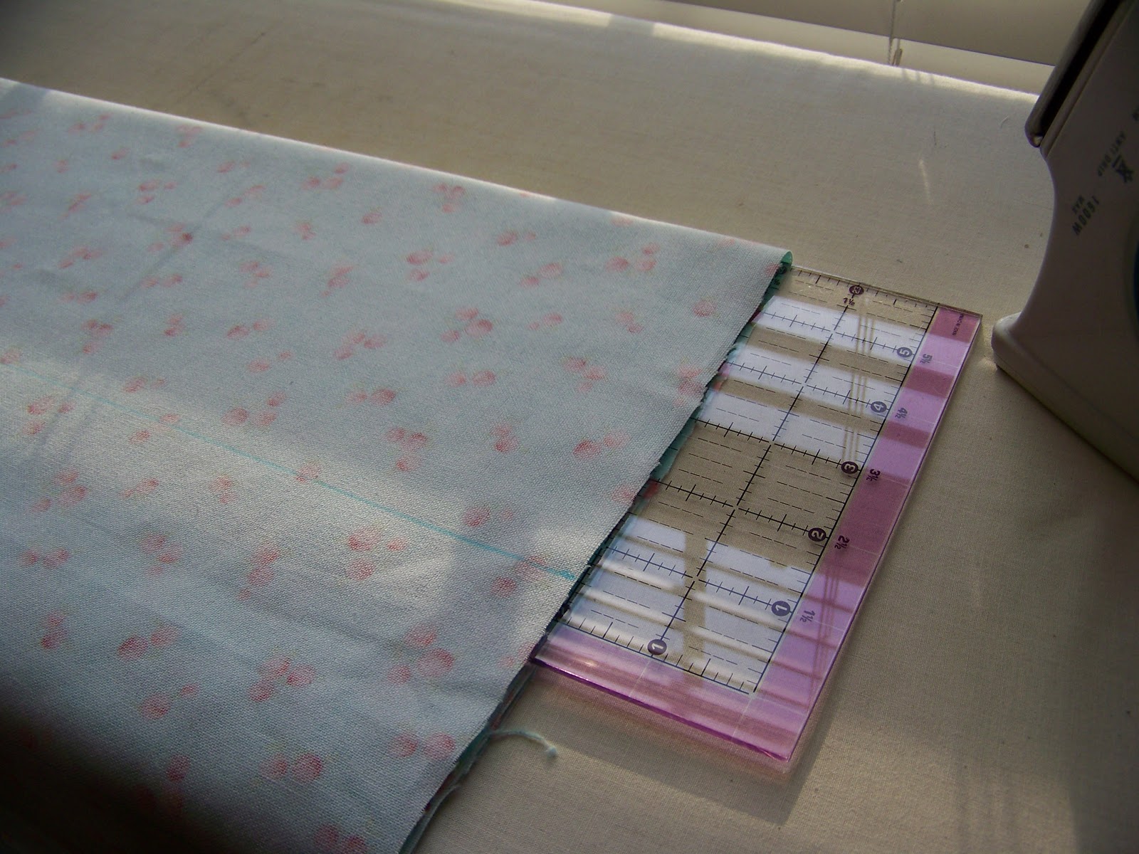 Bring the fabric over the ruler.  Carefully remove the ruler so you keep your folded section nice and even. Press the fold.