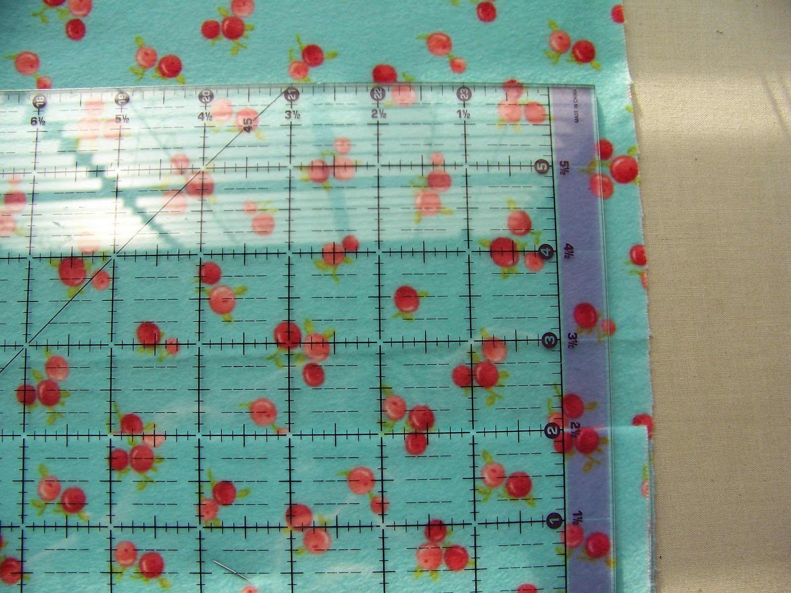 The first step is to trim off the selvages and straighten up the long edges.