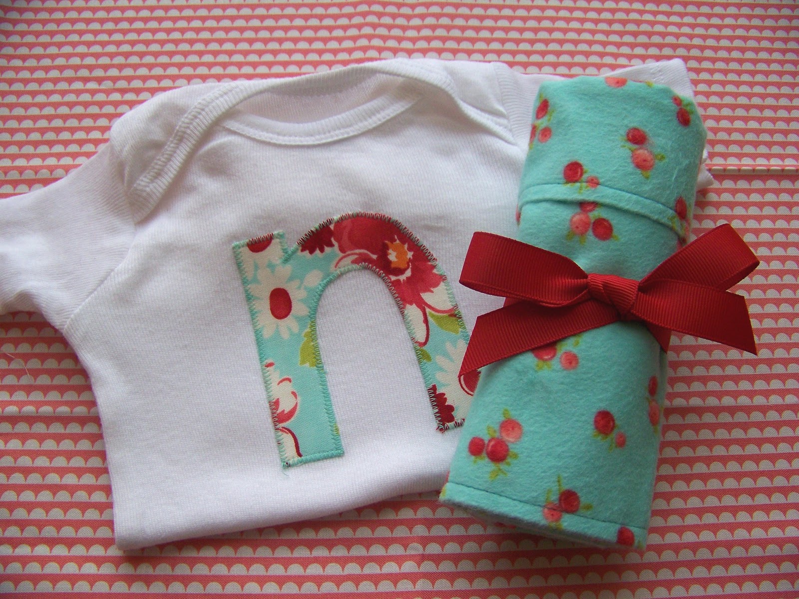 2. Initial onesies are one of my absolute favorite baby gifts! I do mine pretty much exactly the same way. I often use a charm square because I have tons of them and they’re the perfect size. I’m going to make the burp cloth next time, too…I LOVE yours!