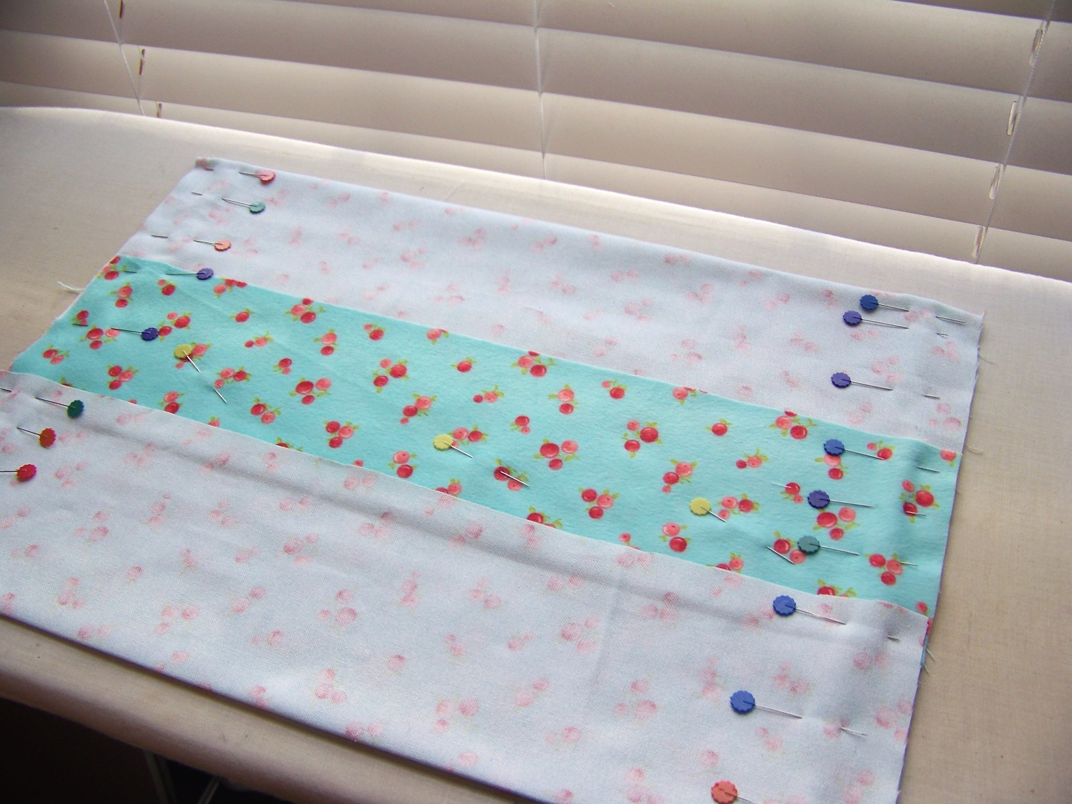 Pin along the edges on both sides.