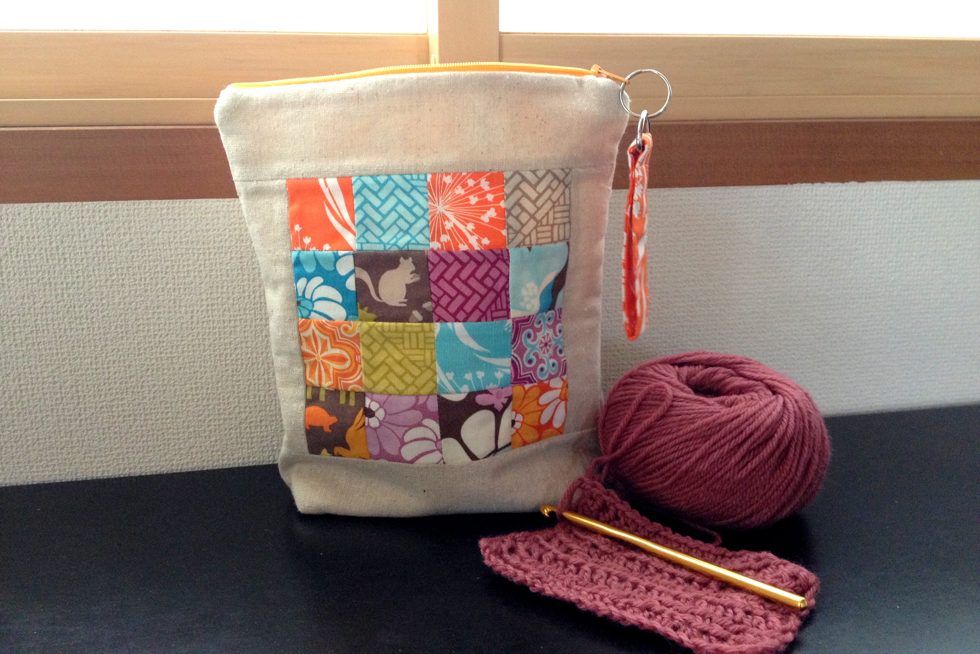 I’m still very, very new at crochet. So new everything I have for it is contained neatly in this pouch! So new I only have one project – a scarf for my daughter for winter. I was sent this pouch as a part of a swap (next pouch swap will be next month on my blog if you’re interested!) and it’s the perfect size – 9″ x 10″ – for my hook and yarn.