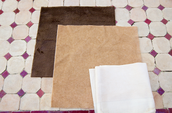 With both the brown and tan fabrics being 9″ squares, you can get the sense of scale of the pattern from the picture above. With pieces this small, it’s easy enough to create your own little travel buddy in a couple of days relaxing by the pool.