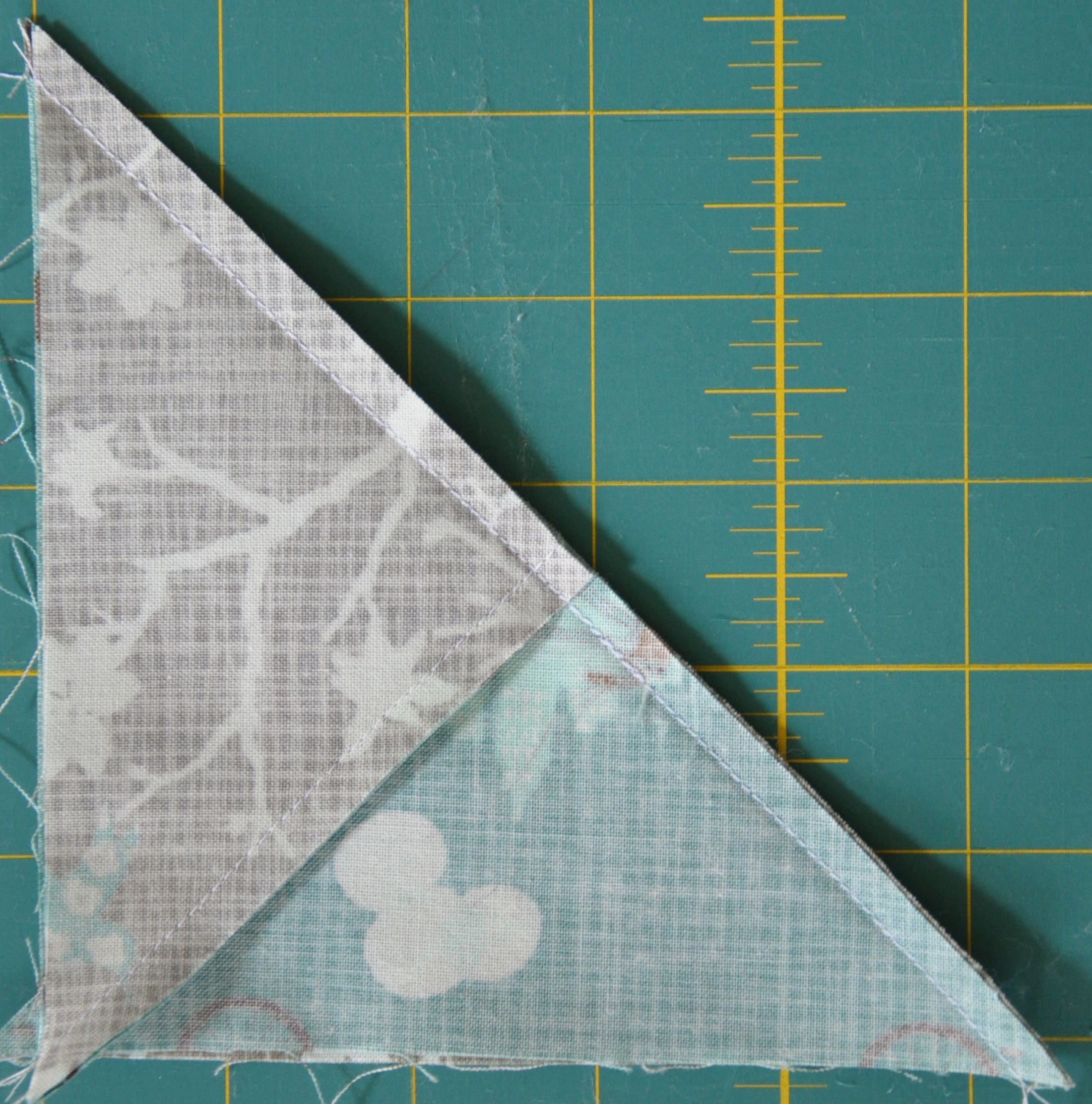 For two of the corners you will need quarter blocks {I used the seam ripper on one half block, so I didn’t have to do any extra cutting}.
