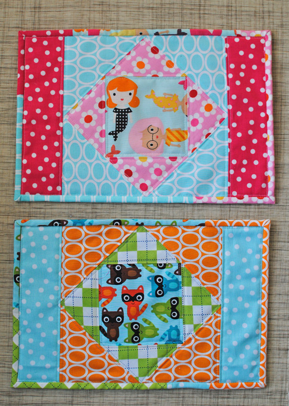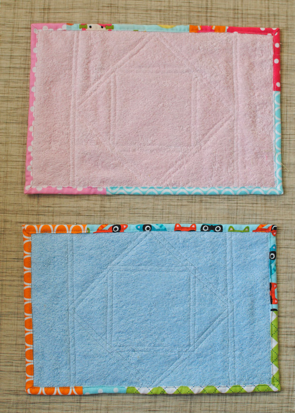 Cute little placemats! I love them! I’m inspired to make some for my girls! The terry cloth backing is such a great idea.