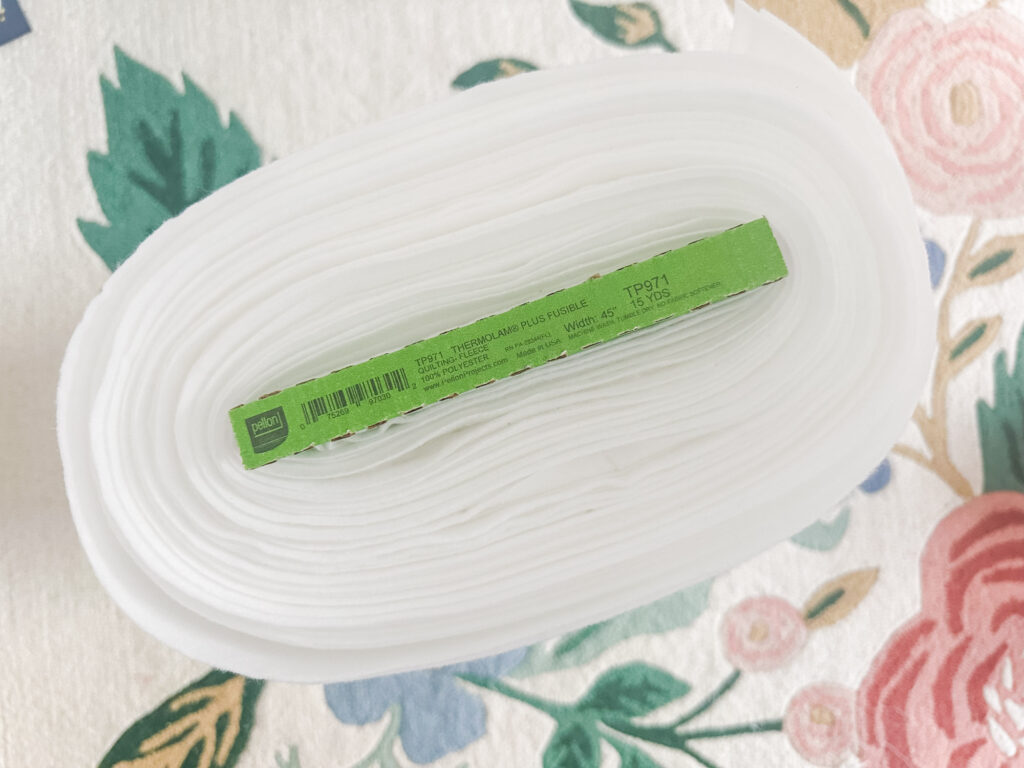 Pellon TP971 Fusible Thermolam Plus is an extra lofty needled fleece. It is both thicker and denser than regular fusible fleece. Fusible Thermolam Plus is great for larger pouches and bags that will be soft without a lot of quilting. You can quilt Fusible Thermolam, but it isn’t necessary because it’s fused. Fusible Thermolam is my go-to choice for most projects. I usually purchase an entire bolt (it goes faster than you think!).