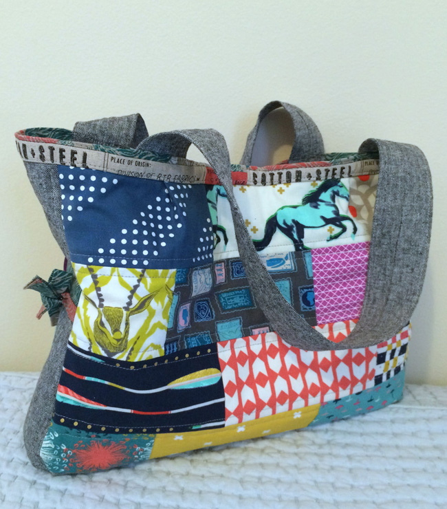 Kayse {quiltykayse} used these pretty Joel Dewberry prints to make her Louisa bag, which has larger rectangles than many of our patterns, perfect for showing off larger prints.