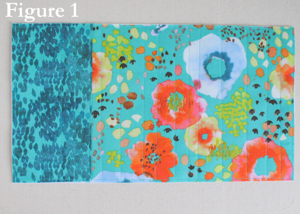 Sew the body accent piece to the left of the main body piece. Following the manufacturer’s instructions, fuse the body interfacing to the wrong side of the body. Place the body flannel on the wrong side of the body piece and quilt as desired. We quilted in randomly placed straight lines.