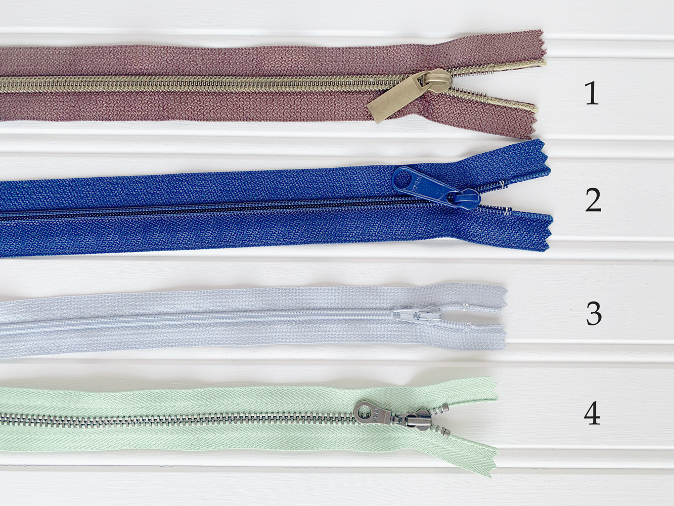 4. Short metal zippers – These are great for outside, inset zippers. I generally buy shorter lengths like 7″.