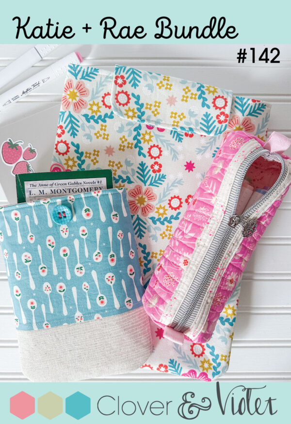 Share on social media by tagging @cloverandviolet and using the hashtags #raepencilcase, #katiebooksleeve, and #cloverandvioletpatterns.