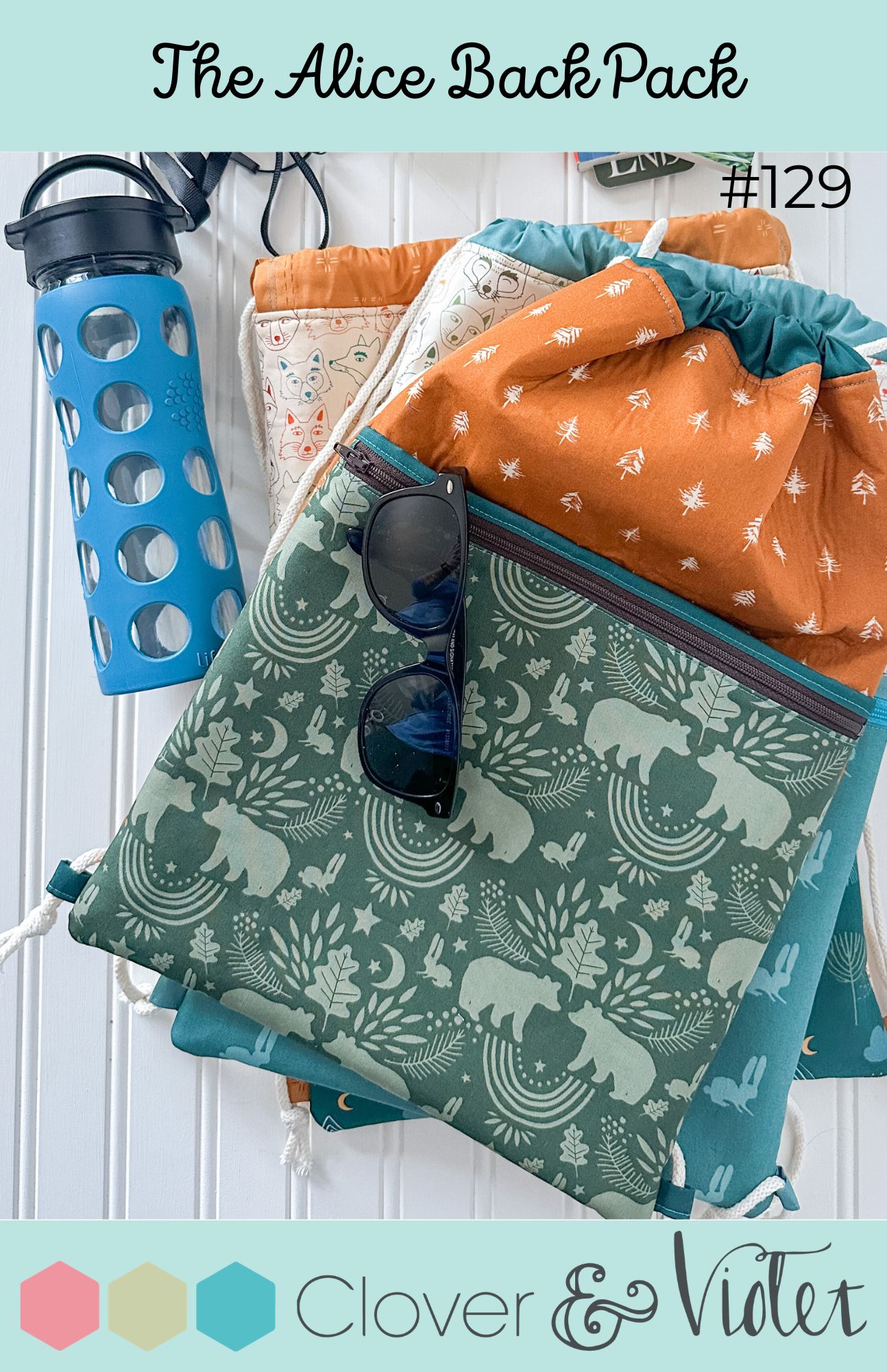 The Alice backpack is great for little trips to the gym, park, or afternoon out. Three sizes make it perfect for littler kids, big kids, and you. One print makes up the body of the bag and then use a favorite feature print for the pocket and drawstring sleeve. The zipper pocket keeps your belongings secure and has a divided pocket behind it.